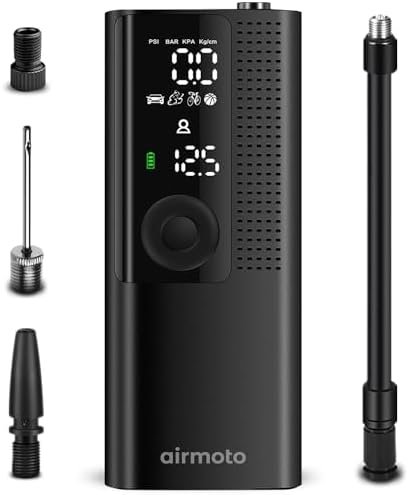 INVEST IN PEACE OF MIND: Perfect gifts for women and gifts for men. Conveniently store this portable air compressor for car tires in your glove box or garage, ready for use whenever needed. The package comprises 1* Airmoto Car Tire Inflator, 1* Air Hose with Schrader attached, 1x General Nozzle Cone, 1* Needle Adapter, 1* Presta Adapter, 1* USB-C Charging Cable, 1* Carrying Case and 1* User Manual. For any questions or concerns, please feel free to contact us.