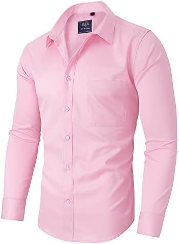 Alimens & Gentle Men’s Dress Shirts Long Sleeve Wrinkle-Free Stretch Shirts Solid Formal Button Down Shirt with Pocket