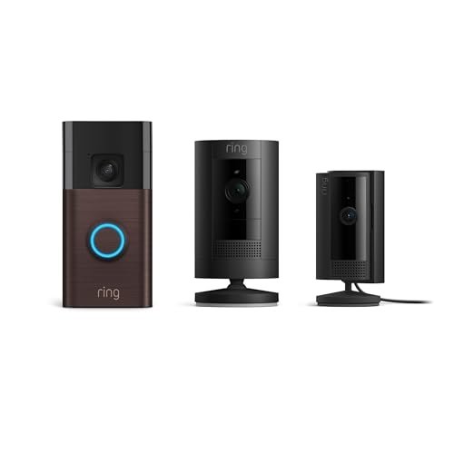 All-new Ring Battery Doorbell with Ring Stick Up Cam Battery (Black) and Ring Indoor Cam 2nd Gen (Black)