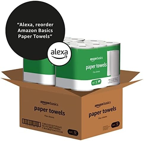 Amazon Basics 2-Ply Flex-Sheets Paper Towels, 12 Basics Rolls = 32 Regular Rolls, Everyday Value with 150 Sheets per Roll