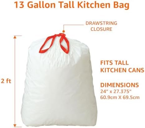 Amazon Basics Flextra Tall Kitchen Drawstring Trash Bags, 13 Gallon, Unscented, 50 Count, Pack of 1