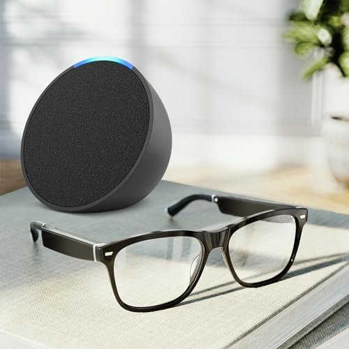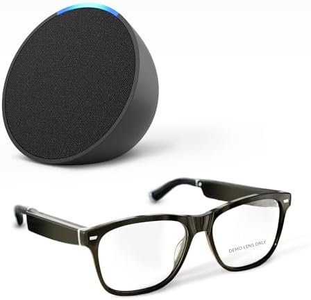 Amazon Echo Frames (3rd Gen) + Echo Pop | Smart glasses with Alexa | Square frames in Classic Black with prescription ready lenses