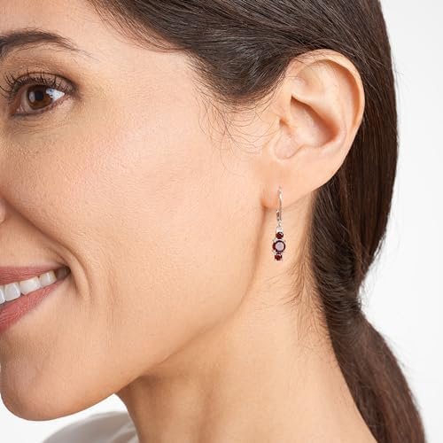 Amazon Essentials Sterling Silver Genuine and Created Gemstone Three Stone Birthstone Leverback Dangle Earrings (previously Amazon Collection)