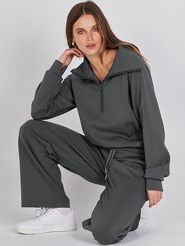 ANRABESS Women 2 Piece Outfits Sweatsuit Oversized Sweatshirt Sweatpants Tracksuit Sweat Lounge Matching Set 2024 Fall Trendy
