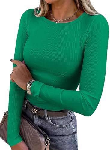 ANRABESS Women Long Sleeve Crewneck Rib Knit Slim Fit Shirts Basic Tee Tops 2025 Casual T-Shirt Going Out Workout Outfits