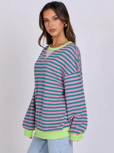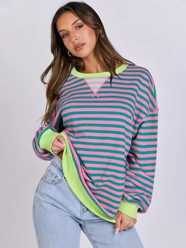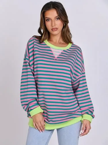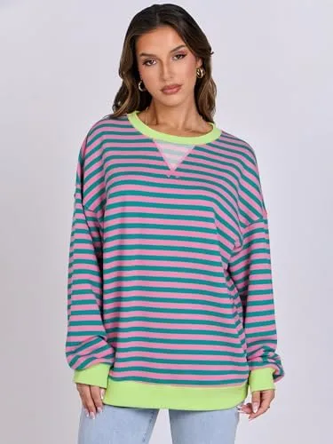 ANRABESS Women Striped Oversized Sweatshirt Long Sleeve Crewneck Hoodies Shirts 2024 Fall Pullover Top Trendy Preppy Clothes