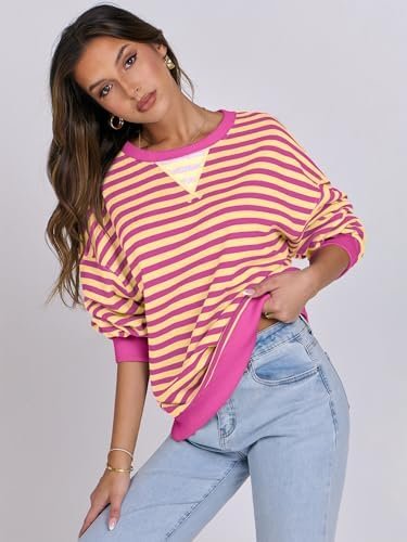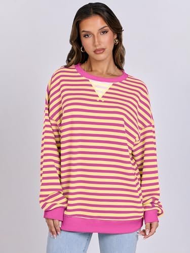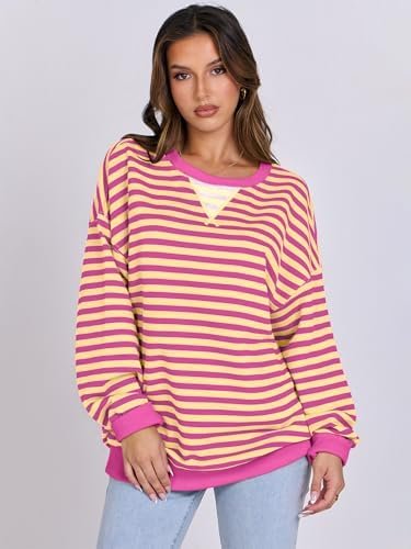 ANRABESS Women Striped Oversized Sweatshirt Long Sleeve Crewneck Shirts 2024 Fall Fashion Pullover Sweater Trendy Clothes