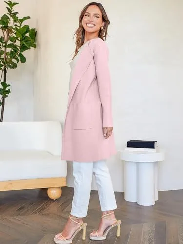 ANRABESS Women’s Open Front Knit Lightweight Cardigan Casual Long Coatigan Sweater Lady Jacket Coat 2024 Fall Outerwear