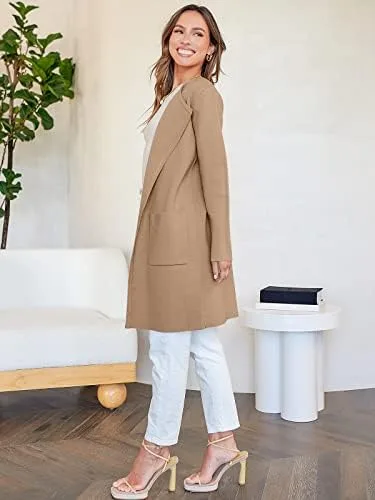 ANRABESS Women’s Open Front Knit Lightweight Cardigan Casual Long Coatigan Sweater Lady Jacket Coat 2024 Fall Outerwear