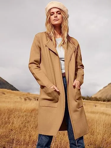 ANRABESS Women’s Open Front Knit Lightweight Cardigan Casual Long Coatigan Sweater Lady Jacket Coat 2024 Fall Outerwear