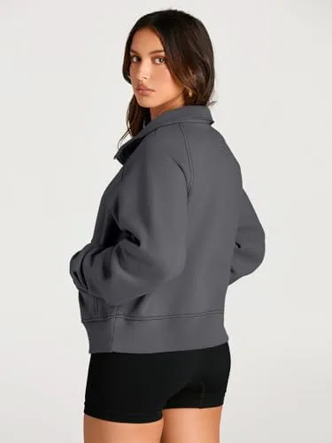 AUTOMET Women Half Zip Fleece Sweatshirts Long Sleeve Cropped Pullover Clothes