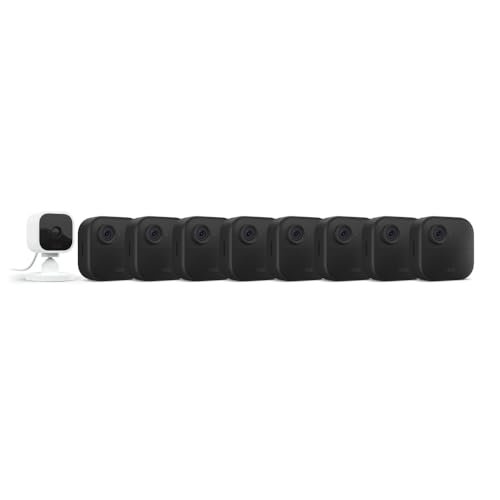 Blink Outdoor 4 (4th Gen) + Blink Mini – Smart security camera, two-way talk, HD live view, motion detection, set up in minutes, Works with Alexa – 8 camera system + Mini (White)