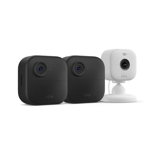 Blink Outdoor 4 + Blink Mini 2 — Smart security cameras, two-way talk, HD live view, motion detection, set up in minutes, Works with Alexa — 2 camera system + Mini 2 (White)