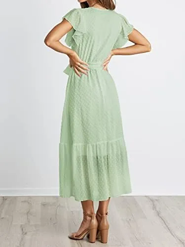 BTFBM Women Summer Ruffle Sleeve Solid Color Wrap V Neck Wedding Guest Dresses