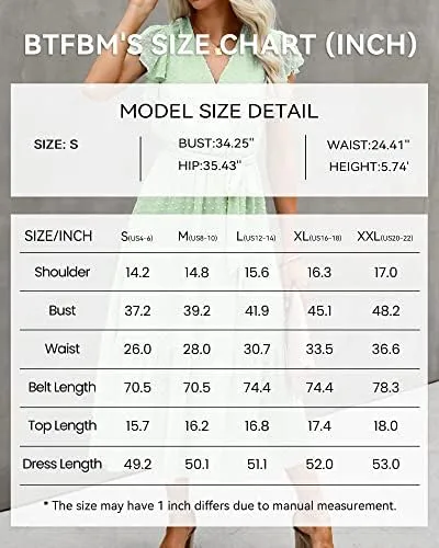 BTFBM Flowy Belted Pleated Summer Sun Dress For Women 2024