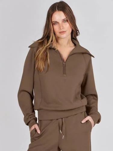 Caracilia Womens Two Piece Outfits Half Zip Sweatsuit Sets