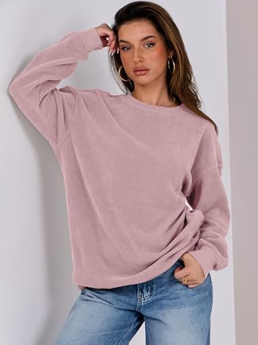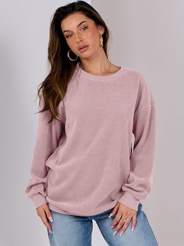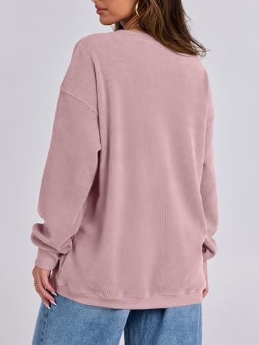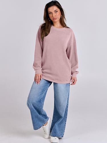 Caracilia Womens Oversized Sweatshirt Sweater Crewneck Long Sleeve Ribbed Corduroy Casual Pullover 2024 Fall Fashion Clothes