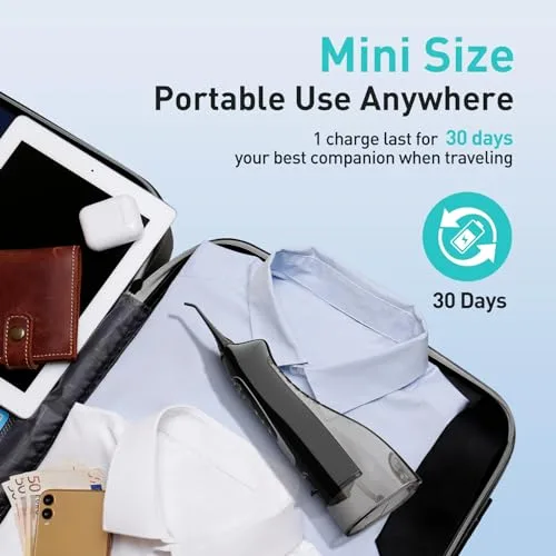 【 30 Days Super Long Battery Life, Portable Use Anywhere 】 This water dental flosser boasts double the battery life of others with a powerful battery. Just charge for 3 hours and enjoy 30 days of use. It’s compact and lightweight, good for home and on-the-go use. This water dental pick comes with a USB cable (adapter not included) making it an ideal travel kit. Benefit from an exceptionally long 30-day battery life, making it a truly portable solution for your convenience