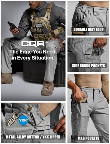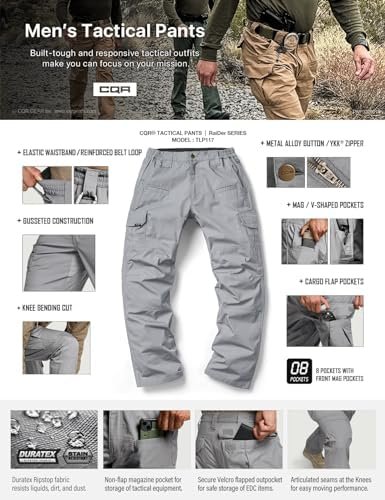 CQR Men’s Tactical Pants, Water Resistant Ripstop Cargo Pants, Lightweight EDC Work Hiking Pants, Outdoor Apparel