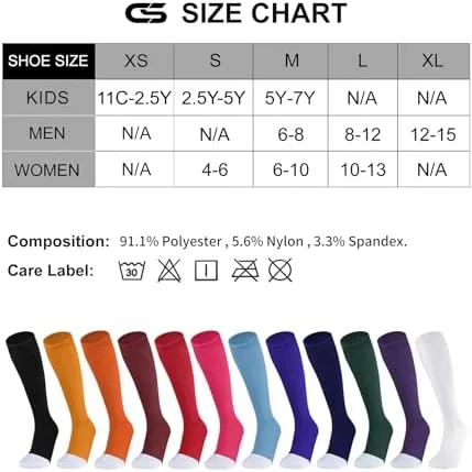 CS CELERSPORT 2/3 Pack Baseball Soccer Softball Socks for Youth & Adult Multi-sport Tube Socks