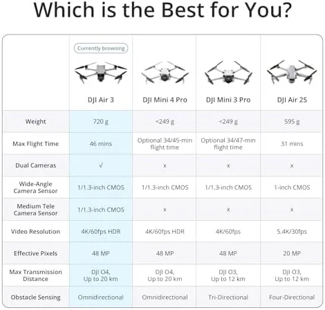 ** All data was tested using a production model DJI Air 3 in a controlled environment. Actual experience may vary depending on the environment, usage, and firmware version.