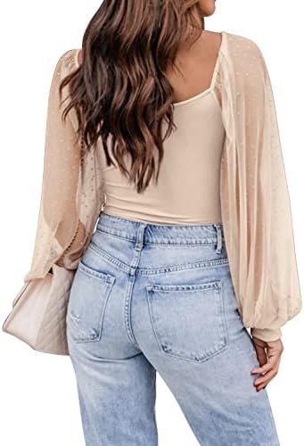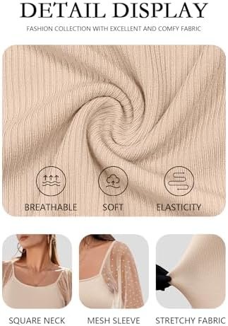 Long sleeve shirts is soft and comfortable to wear. Full of elasticity, enough room for everybody to wear, easy dress on or dress up. Perfect fit.Womens tops, mesh long sleeve, square neck, swiss dot, puff sleeve, ribbed, polka dot, slim fitted, super cute & delicate top.