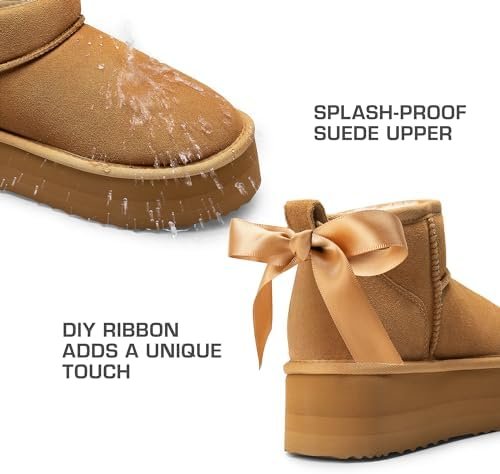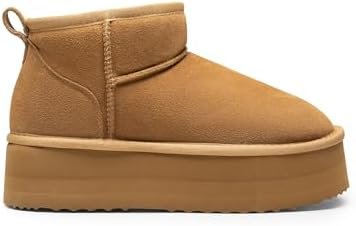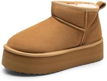 DREAM PAIRS Platform Mini Boots for Women Suede Genuine Leather, Classic Winter Ankle Snow Boots with Memory Foam Insole Lightweight Anti-Slip Outsole Outdoor FuzzyClassic