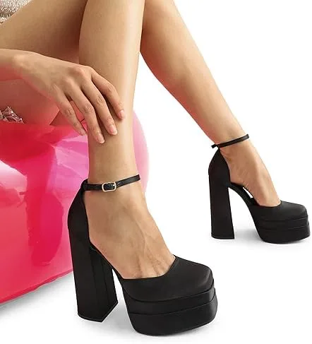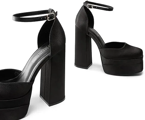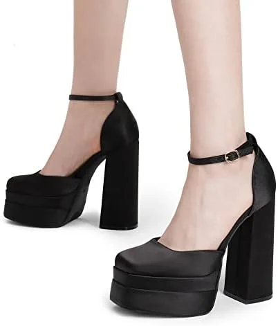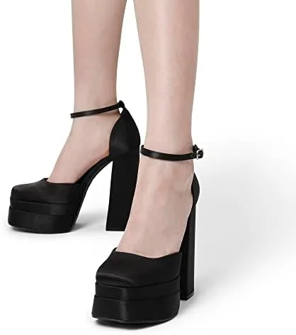 DREAM PAIRS Women’s High Chunky Platform Closed Toe Block Heels Square Toe Ankle Strap Dress Wedding Party Pumps Shoes