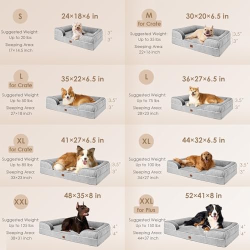 EHEYCIGA Orthopedic Dog Beds for Extra Large Dogs, Waterproof Memory Foam XL Dog Bed with Sides, Non-Slip and Egg-Crate Foam Big Dog Couch Bed with Washable Removable Cover, Grey