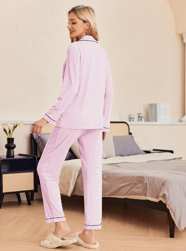 Ekouaer Pajamas Women’s Long Sleeve Sleepwear Soft Button Down Pjs Lounge Set