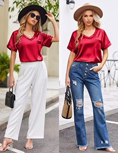 Ekouaer Silk Pajama for Women Short Sleeve Satin Pj Set Two Piece Soft Sleepwear Loungewear, S-XXL