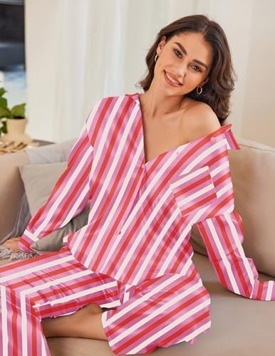 Ekouaer Womens 2 Piece Silk Satin Pajama Set Long Sleeve Lounge Sets Button Down Shirts and Pants PJs Soft Sleepwear Sets