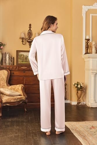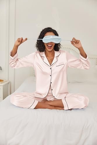 Ekouaer Women’s Classic Button Down Long Satin Silk Pajama Set