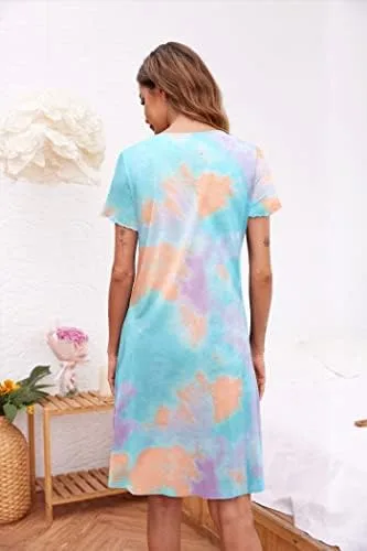 Women’s Nightgown Sleepwear Short Sleeves Shirt Casual Soft Sleepdress for Lady