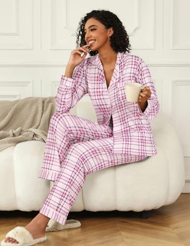 Ekouaer Womens Pajamas Set Button Down Long Sleeve Top and Pants Pjs