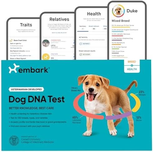 Embark Breed & Health Kit – Dog DNA Test – Discover Breed, Ancestry, Relative Finder, Genetic Health, Traits, COI