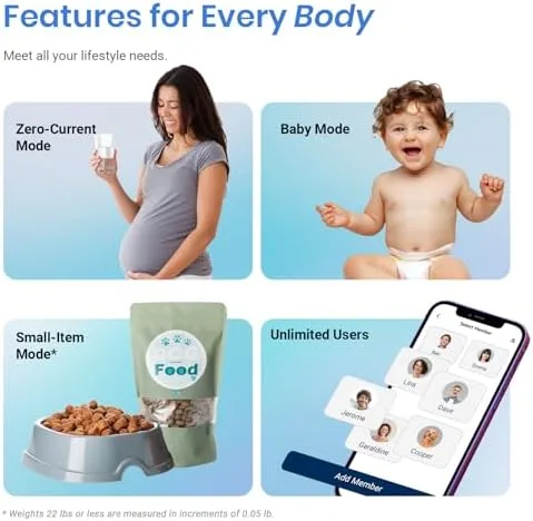 Versatile Weighing Solution: Our scale offers 3 different modes designed to cater to all your needs. Zero-Current Mode ensures a safe weigh-in option, Baby Mode tracks baby or pet growth, and For Light Items weighs items as light as 100g