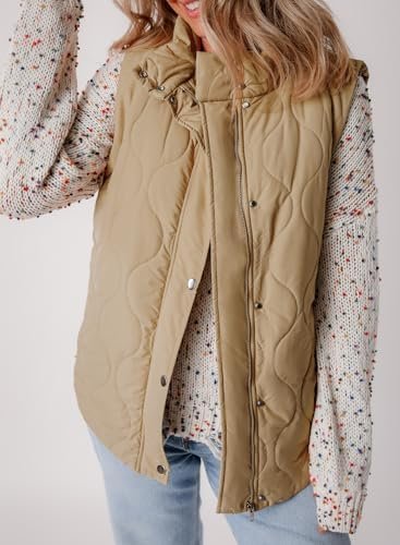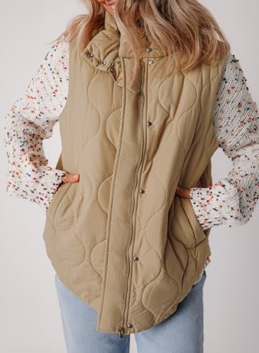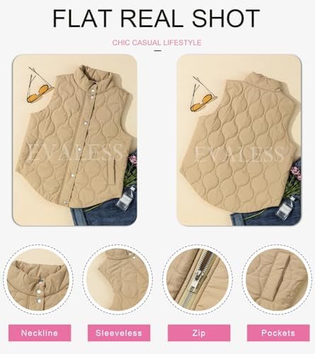 EVALESS Cropped Puffer Vest Women Lightweight Quilted Stand Collar Sleeveless Jackets Fall Button Zip Up Warm Coat Outerwear