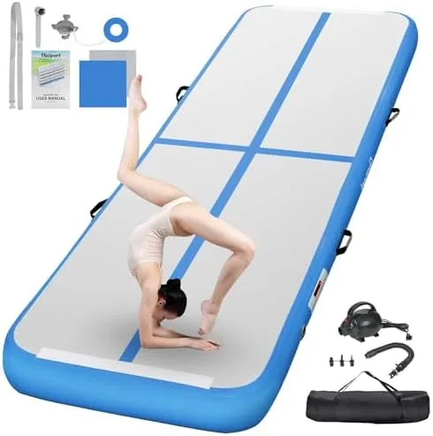 FBSPORT Inflatable Air Gymnastics Mat Training Mats 4/8 inches Thickness Gymnastics Tracks for Home Use/Training/Cheerleading/Yoga/Water with Pump