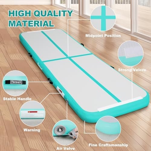FBSPORT Inflatable Air Gymnastics Mat Training Mats 4/8 inches Thickness Gymnastics Tracks for Home Use/Training/Cheerleading/Yoga/Water with Pump