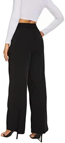 FUNYYZO Women’s Wide Leg Pants High Elastic Waisted in The Back Business Work Trousers Long Straight Suit Pants