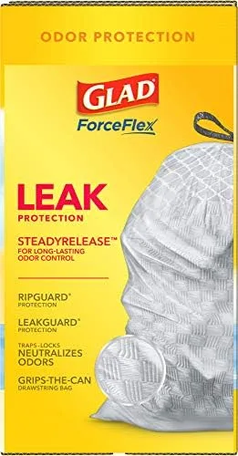 Fight kitchen odors with Glad trash bags and the steady release of Febreze freshness. Glad Tall Kitchen Drawstring Trash Bags are designed with ForceFlex technology to give extra flex as it expands around sharp edges and heavy loads, so you can pack it in while resisting tears, rips and punctures. A steady release of a Fresh Clean scent with Febreze Freshness provides long lasting odor control. Let the stretchable strength of Glad handle all the messes our busy daily life can throw at it and then some. With double-sided seals and a reinforced bottom, these bags are designed with RipGuard and LeakGuard technology to prevent seepage of liquids and keep trash contained. The durable Grips-The-Can Drawstring ensures a tight grip on the trash can to keep it in place. Take the trash to the curb with no fear of leaks and tears, and no frustration. These tall kitchen trash bags are made with 100% renewable energy. And heres something cool: if everyone in the U.S. chose Glad drawstring trash bags it would Save 100 Million Pounds of Plastic from going into landfills every year.* Glad 13gal bags are comparable to Simplehuman E, F, G, H, J, K, M, N, P, or Q trash bags**.**Simplehuman is a trademark of Simplehuman, LLC. Glad is not sponsored by or affiliated with Simplehuman. *Based on IRI sales data. Glad Kitchen drawstring bags are made with 7% to 22% less plastic vs top 10 competitors.