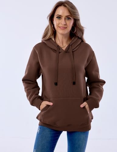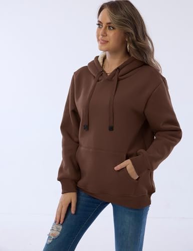 Haellun Womens Casual Winter Warm Fleece Sherpa Lined Pullover Hooded Sweatshirt
