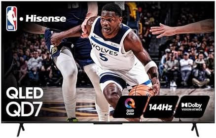 Hisense 65-Inch Class QD7 Series QLED 4K UHD Google Smart TV (65QD7N, 2024 Model) – QLED, Native 144Hz, Motion Rate 240, Direct Full Array, Game Mode Pro, Alexa Compatibility