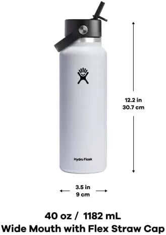 HYDRO FLASK Wide Mouth vacuum insulated stainless steel water bottle with leakproof closeable straw lid for cold water drinks, sports, travel, car and school