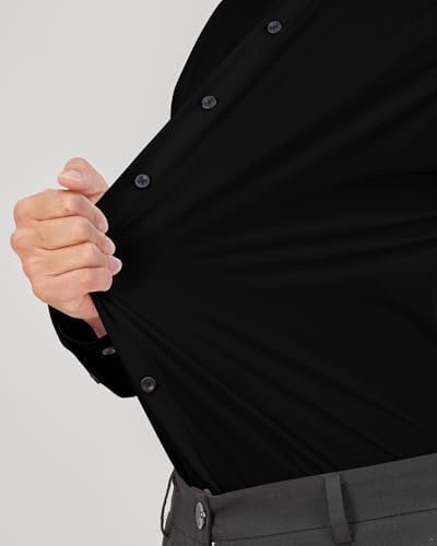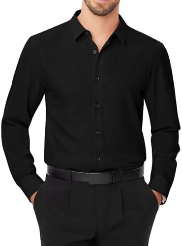 J.VER Men’s Dress Shirts Stretch Long Sleeve Formal Shirt Solid Business Casual Button Down Shirts for Wedding Prom
