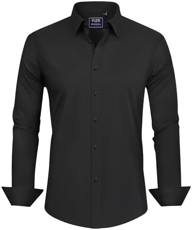 J.VER Men’s Dress Shirts Stretch Stain Shield Long Sleeve Solid Formal Shirt Business Casual Button Down Shirts