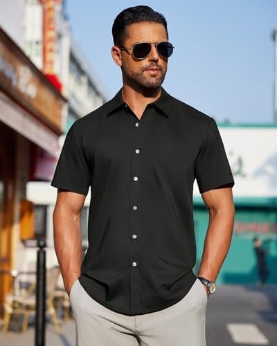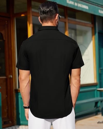 J.VER Mens Short Sleeve Button Down Shirt Stretch Business Casual Dress Shirts Solid Summer Wedding Prom Tops