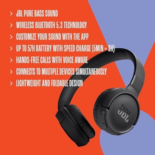 Customize your listening experience: Download the free JBL Headphones App to tailor the sound to your taste with the EQ. Voice prompts in your desired language guide you through the Tune 520BT features.