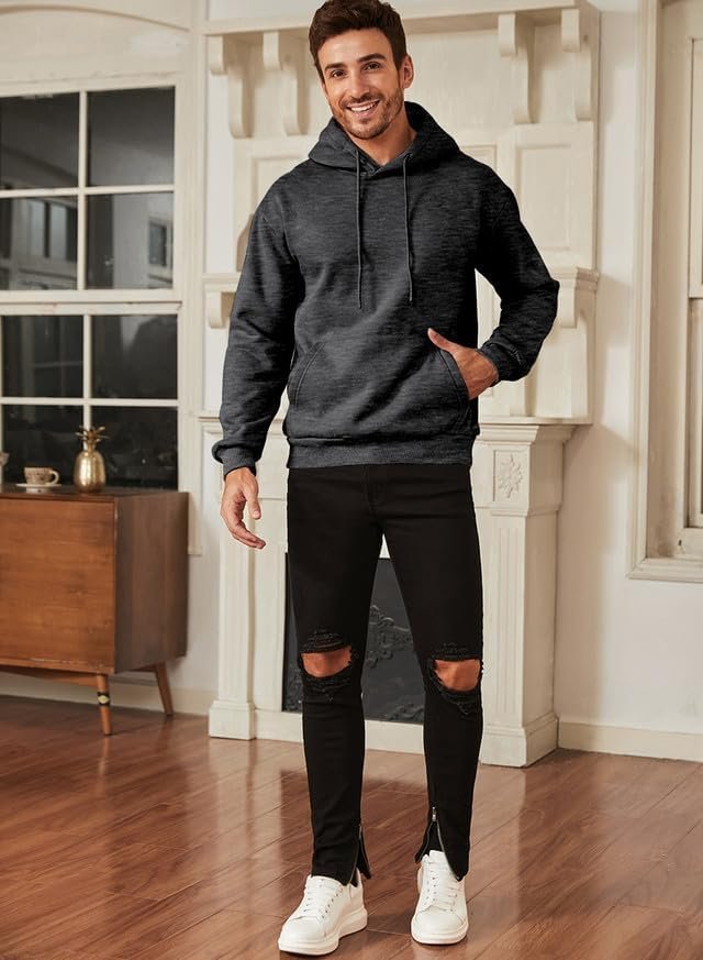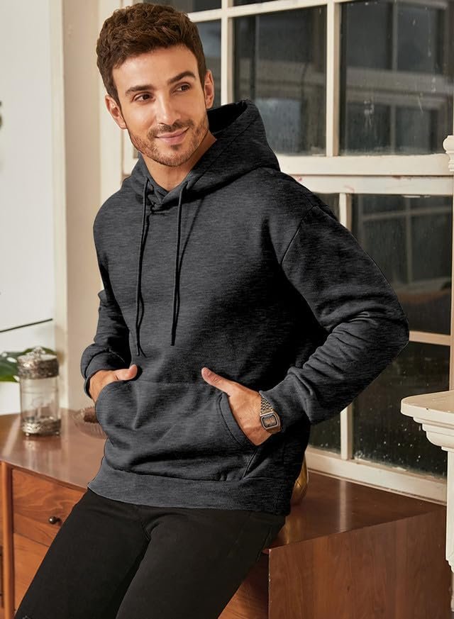 JMIERR Mens 2024 Casual Cotton Hooded Collar Drawstring Hoodies Pullover Sweatshirts Casual Long Sleeve Shirts
